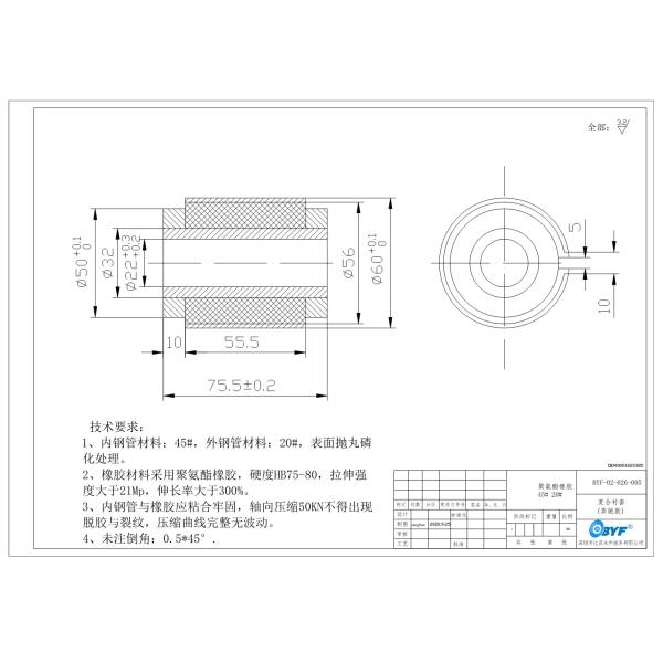 3. The inner steel pipe and rubber shall be firmly bonded, no degumming and crack shall be found under axial compression of 50KN, and the compression curve shall be complete without fluctuation.